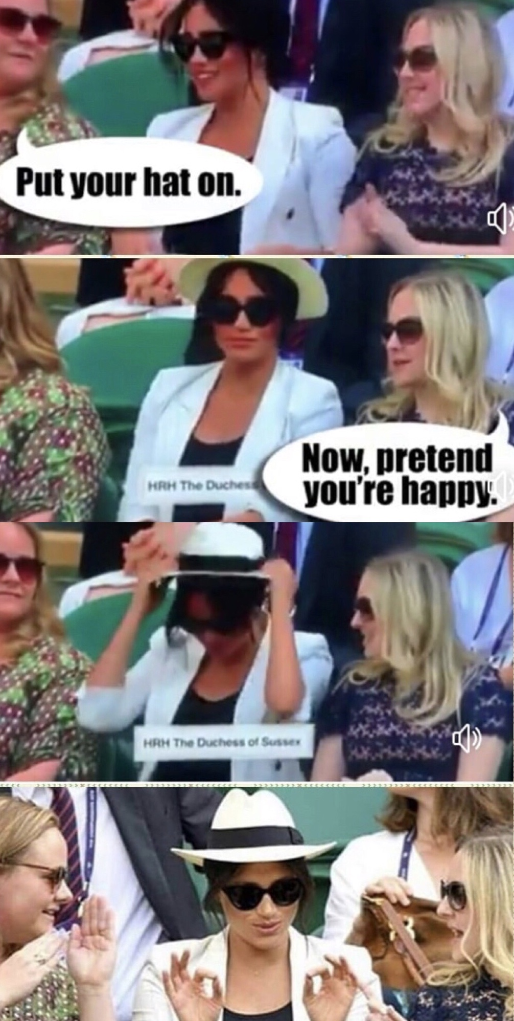 My favourite part was when Meghan put a lot of effort into her facial expressions, trying to pretend she understands tennis, when really the only sport she’s adept in is seeking out the closest camera. Bless ya, Meg. You tried.