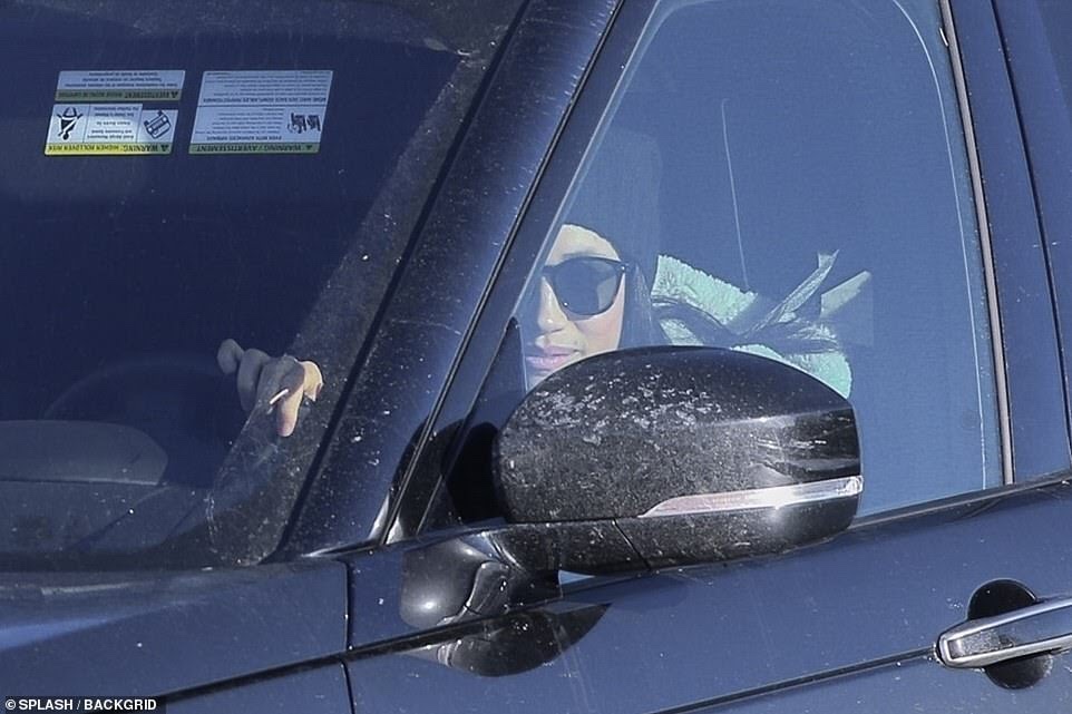 And then they were off – with Meghan being sure to check her wing mirror before pulling out into the traffic and away from the airport.