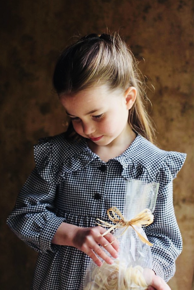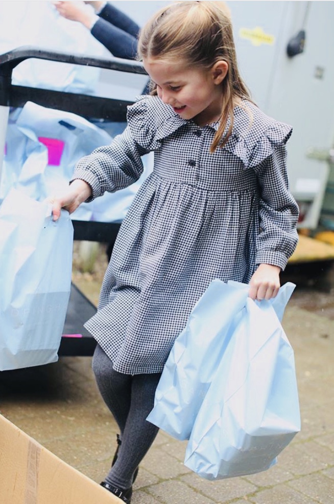 To mark the occasion, William and Catherine released a series of photos where Charlotte helped deliver pasta and other food packages to the elderly in self-isolation in Norfolk.
