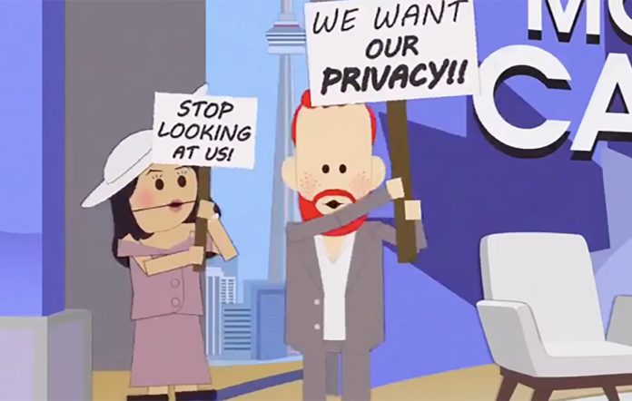 Obviously taking the piss out of Harry and Meghan, South Park called the segment the “Worldwide Privacy Tour”, showing an ‘unnamed pair of losers “Prince and Princess”‘ holding placards as they appear on a talk show, to discuss how they just want to be left alone.