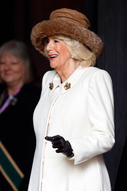 Broadcast at Worcester Cathedral, his wife Queen Camilla stepped in to take on the King’s usual duties handing out money to local people who are honoured for their community contributions.
